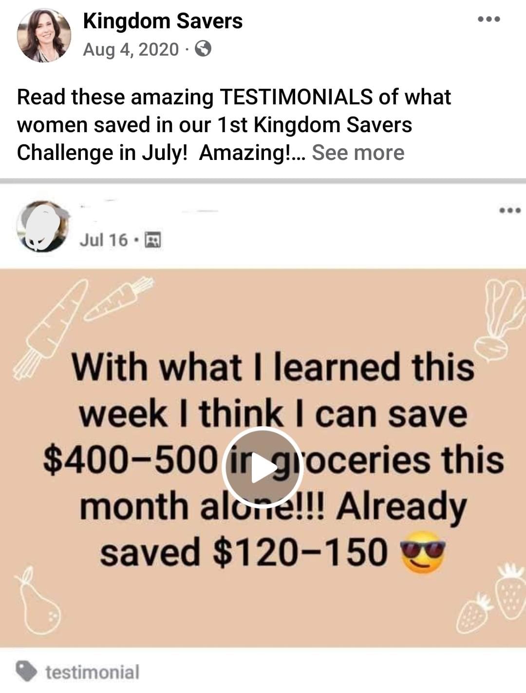 "The Christ-centered focus was amazing, it really has changed my life. It has given me the courage to improve communications about money with my husband. Things we should have been talking about for a decade. It was so affordable to join this challenge, I’m going to save $50-$100 a week on my grocery bill!”